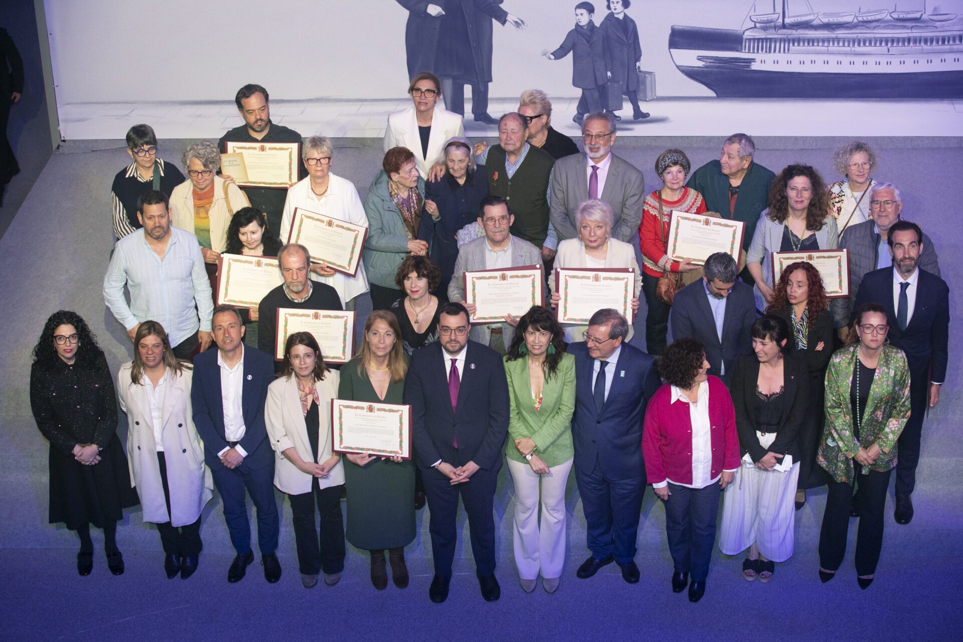 El Centro Niemeyer, en Avilés, ha sido este jueves el escenario del acto institucional que establece la Ley de Memoria Democrática en recuerdo del exilio republicano español en el que se han entregado las declaraciones de reconocimiento y reparación a una veintena de personas exiliadas, entre ellas cinco procedentes de Asturias. En esta ocasión el día del exilio ha estado dedicado de manera especial a los niños y a las niñas de la guerra.