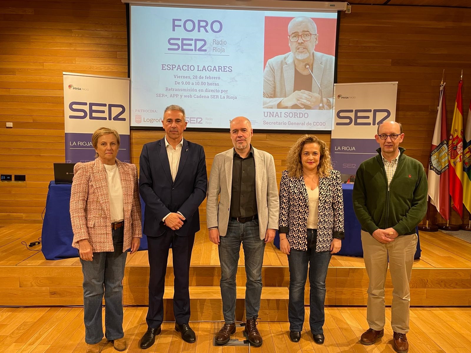 El secretario general de Comisiones Obreras, Unai Sordo, ha afirmado este viernes en Logroño que «el reto ahora es hacer popular la reivindicación de la jornada laboral». Así lo ha dicho durante su participación en el primer Foro Radio Rioja de 2025, celebrado en el Espacio Lagares de la capital riojana.