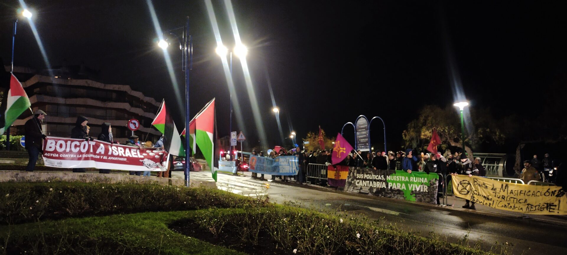 Ya a la tarde, colectivos sociales como la Plataforma Cantabria para vivir, la Red Antidesahucios, Stop-Deshacios y Pasajes Seguros han participado de la concentración principal bajo lemas como Ni casa sin gente, ni gente sin casa , Desde el río hasta el mar, Palestina vencerá , Qué vergüenza nos roban las pensiones, la sanidad y la dependencia , Cantabria no se vende, se ama, se defiende , Sanidad pública o No queremos presidentes autonómicos en Cantabria, que se vayan para no volver