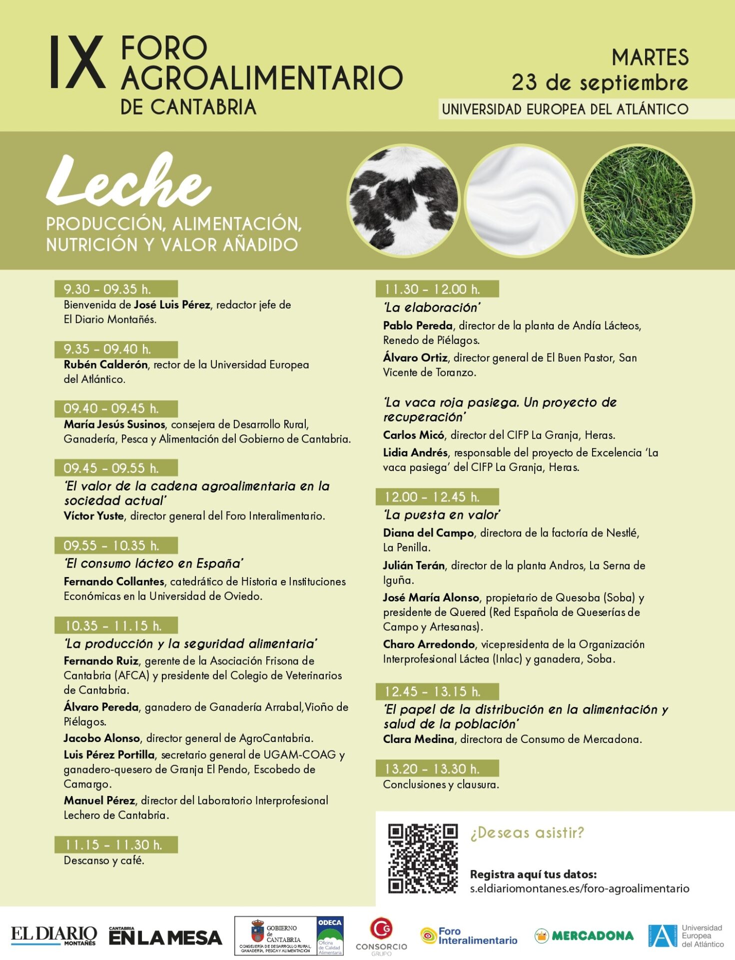 Universidad Europea del Atlántico, UNEATLÁNTICO, acogerá el día 23, de 9.30 a 13.30 horas, el IX Foro Agroalimentario de Cantabria, que en esta edición estará dedicado al sector lácteo, bajo el lema Leche: producción, alimentación, nutrición y valor añadido .