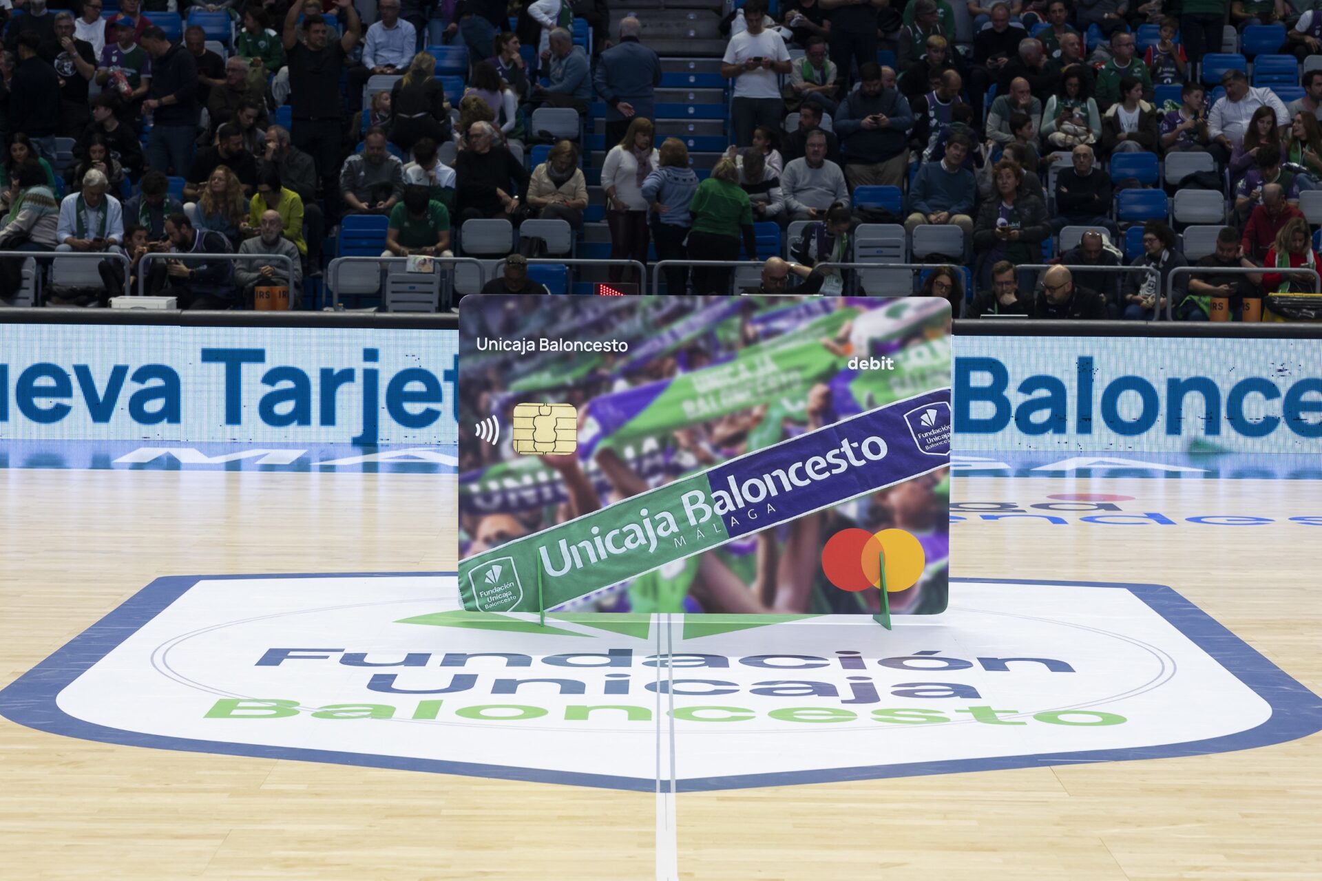 El diseño de la tarjeta también rinde homenaje a la afición. Así, la bufanda oficial del equipo protagoniza la imagen principal, mientras que, en un segundo plano, puede verse parte de la grada del Martín Carpena con la Marea Verde animando al equipo, lo que pone de manifiesto el apoyo incondicional del público.