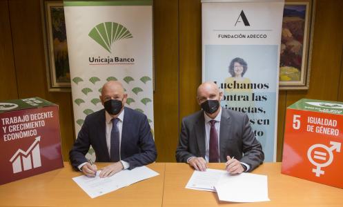 Unicaja Banco ha firmado este martes una nueva colaboración con la Fundación Adecco para impulsar el desarrollo de actividades de inclusión laboral dirigidas a mujeres en riesgo de exclusión social.