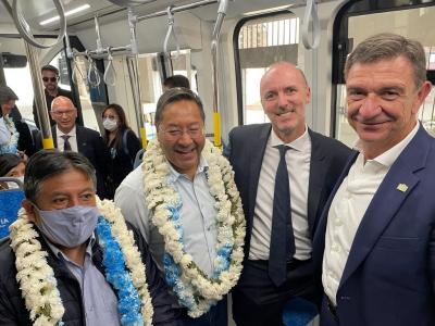 Urbas ha inaugurado junto al presidente de Bolivia, Luis Arce, el Tren Metropolitano de Cochabamba , el primer tren eléctrico del país latinoamericano, que se enmarca en un megaproyecto ferroviario de la compañía con un presupuesto de casi 450 millones de dólares (449 millones de euros al cambio actual).