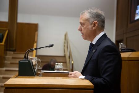 En su respuesta, el lehendakari ha reprochado al Grupo Mixto-Vox que sus intervenciones sean un mero ejercicio de «demagogia», y que se dedique a «atacar al Gobierno y al mismo tiempo hacerse la víctima» sin aportar «ni un dato objetivo» que justifique sus críticas.