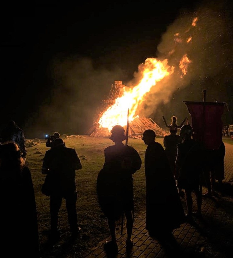 A las 21.30 horas llegará el turno de la música con una romería a cargo de Panorama City, que irá seguida del espectáculo audio-visual en la playa. A las 23.15 horas, tendrá lugar la teatralización Los vientos de la llama eterna , a cargo de Ulapé Teatro, que recreará los momentos previos.