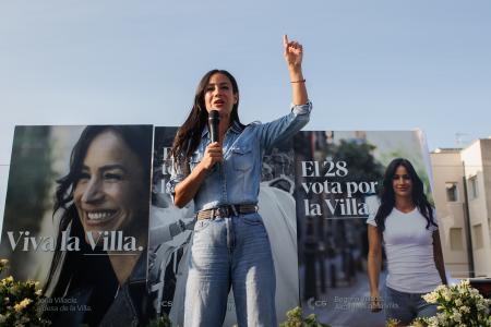 En otro cartel se puede leer Viva la Villa con un primer plano de la candidata naranja y en un tercero, la política y abogada madrileña aparece caminando con camiseta balnca y pantalones sobre la frase El 28 vota por la Villa .