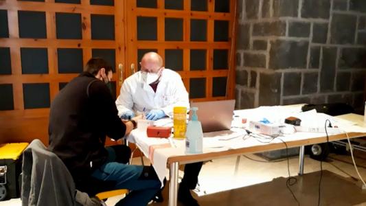 Voluntarios se vuelcan en Jaca en la extracción de muestras para encontrar un donante de médula para un menor