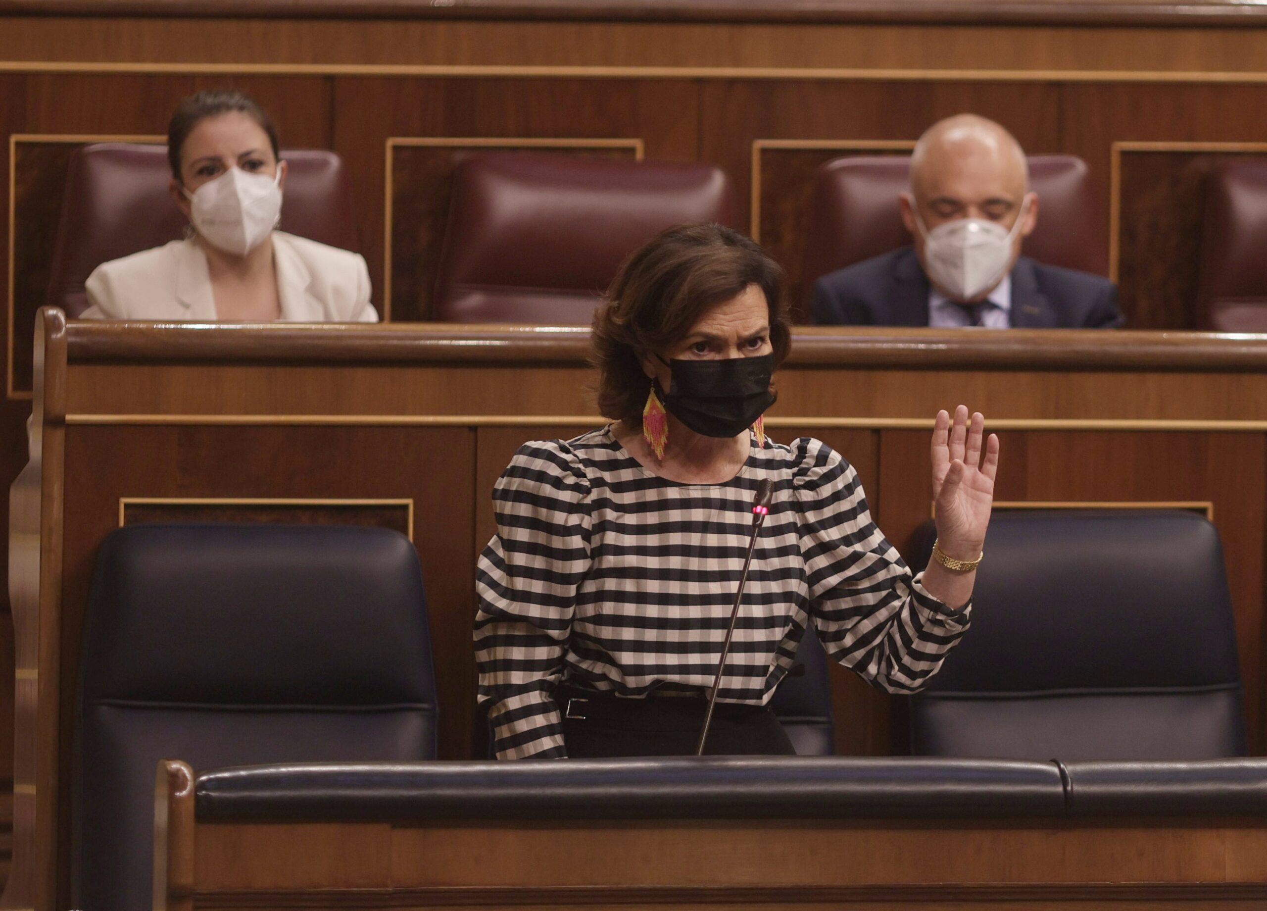 «Dejen de mentir y de convulsionar este país, que todavía está atravesando una pandemia. Dejen de mentir a los españoles, de inquietarles», ha respondido la vicepresidenta primera.