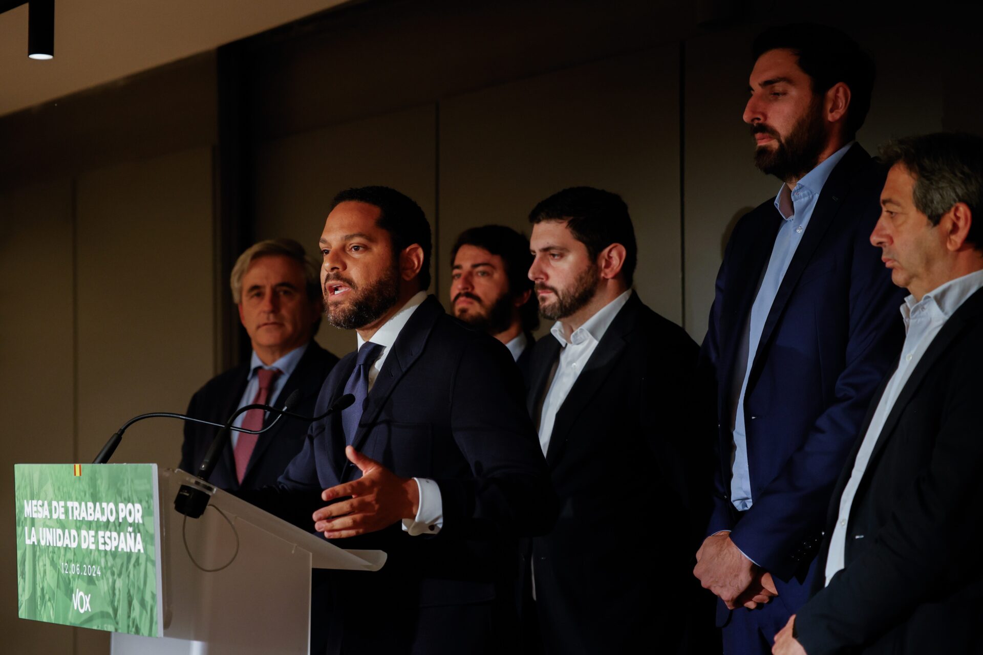 Garriga ha explicado que este miércoles han creado una Mesa de trabajo por la unidad de España , formada por los representantes de Vox presentes en la rueda de prensa, ante el momento de «extrema gravedad» que asegura que atraviesa España tras la aprobación de la Ley de Amnistía, y ha explicado que esta mesa servirá para coordinar acciones desde las diferentes instituciones en las que Vox tiene representación y desde el propio partido.