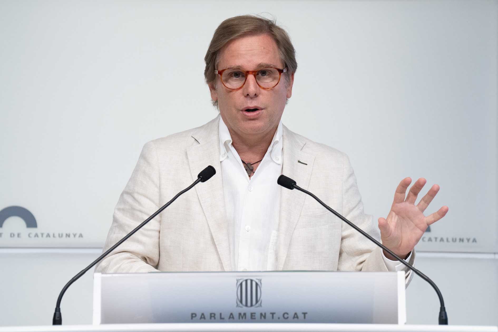 El portavoz de Vox también ha criticado que PSC y ERC estén «negociando a escondidas, sin transparencia» sobre una posible investidura, y ha calificado de muy peligroso que la Generalitat recaude todos los impuestos, como proponen los republicanos.
